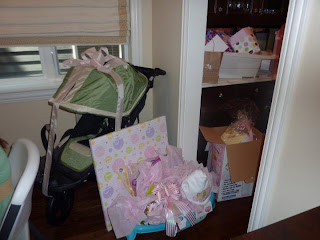All the fun gifts! We all pitched in and got Amanda her stroller which she was very excited about.